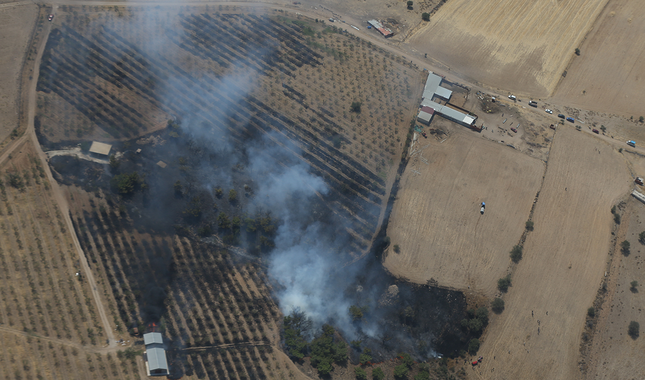 Yangın bölgesi, Anadolu Ajansı ekibince Orman Genel Müdürlüğüne ait helikopterle havadan görüntülendi.