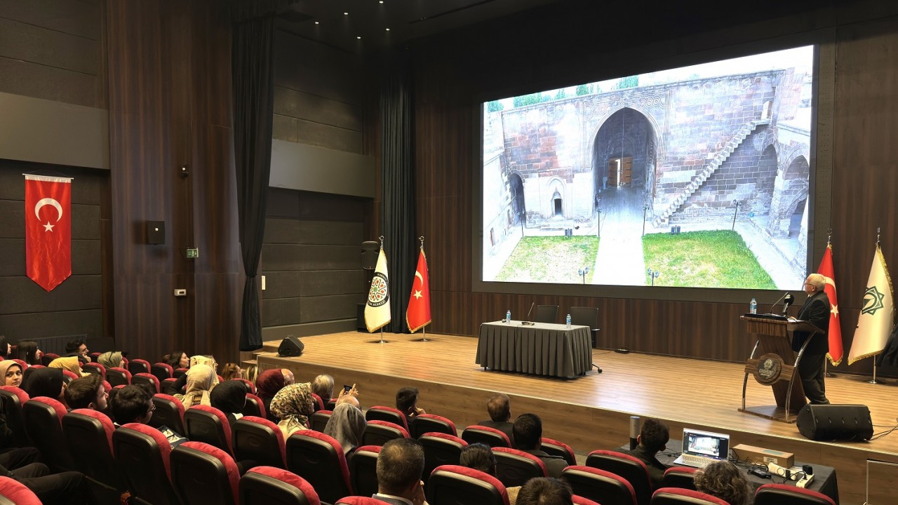 Selçuk Üniversitesi Edebiyat Fakültesi Sanat Tarihi Bölümü Öğretim Üyesi Prof. Dr. Ali Baş, Celaleddin Karatay Kervansaray’ının plan aşaması ve mimari özelliklerini katılımcılarla paylaştı.