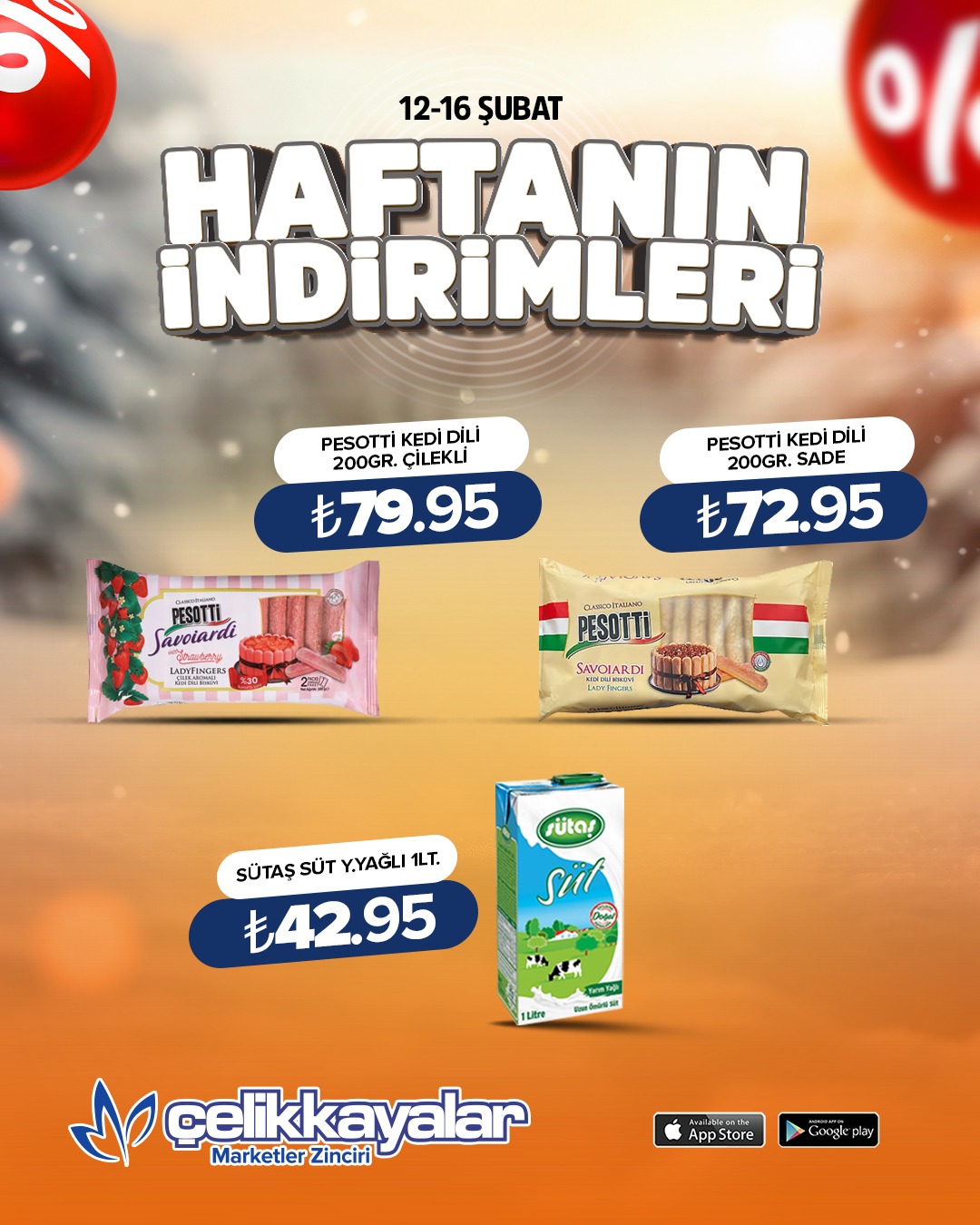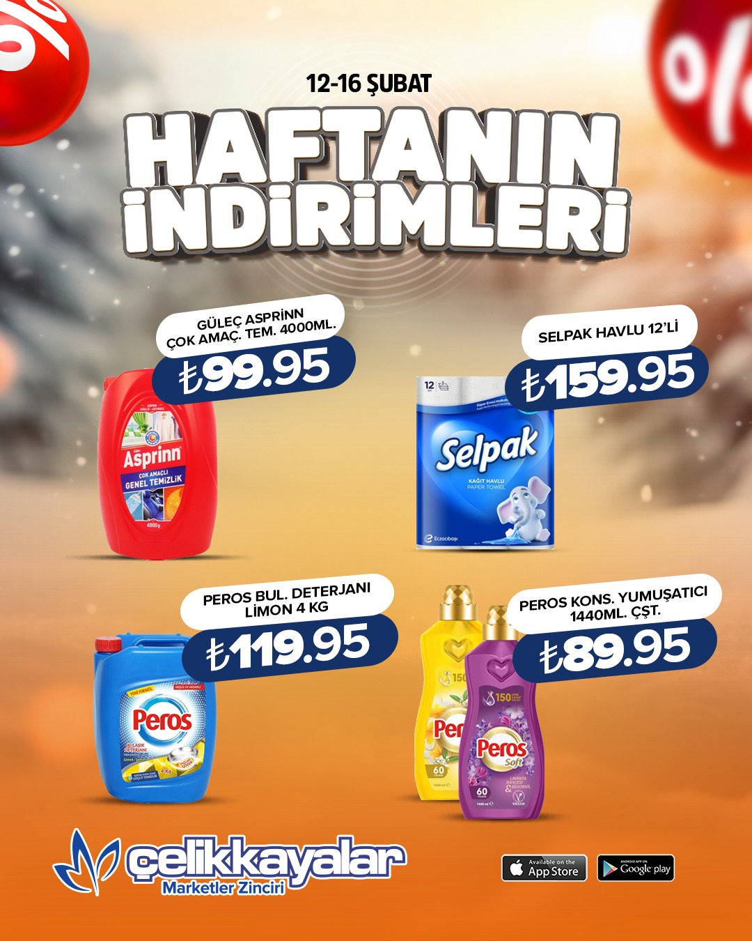 Çelikkayalar Market’in 12-16 Şubat kampanyası kapsamında temel gıda ürünlerinden kahvaltılıklara, temizlik ve kişisel bakım ürünlerine kadar birçok kategoride indirim uygulanıyor. Kampanya belirtilen tarihler arasında geçerli olacak.