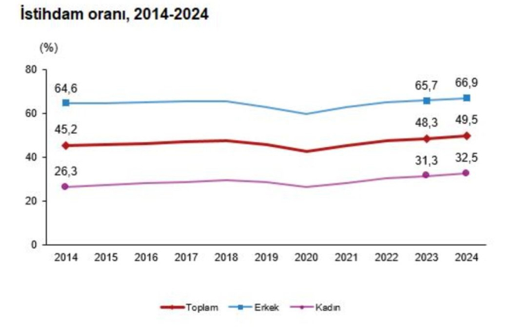 Kadınlarda ve gençlerde işgücüne katılma oranı artarken, işsizliğin düşmesi sevindirici bir gelişmedir. Kadınlar ve gençler başta olmak üzere istihdamda artışların sürmesiyle ekonomimizin daha da güçlenmesini bekliyoruz.