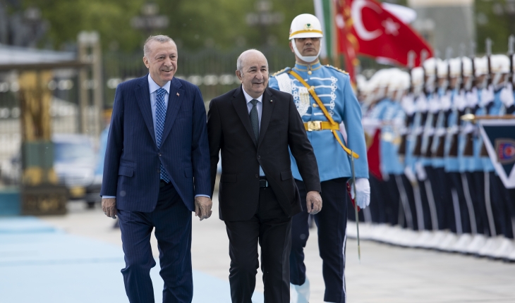 Erdoğan, Cezayirli mevkidaşı Abdülmecid Tebbun'u Cumhurbaşkanlığı Külliyesi'nde resmi törenle karşıladı.