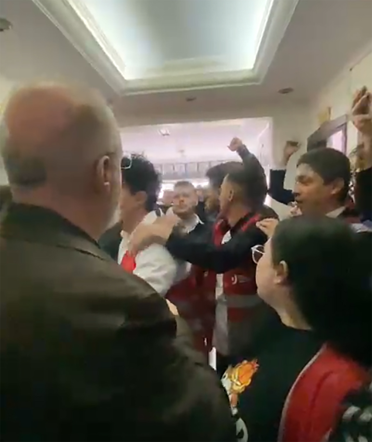 Açıklamanın ardından binaya girmek isteyen üyeler ile buna izin vermeyen il yöneticileri arasında arbede yaşandı. O anlar kameraya böyle yansıdı...