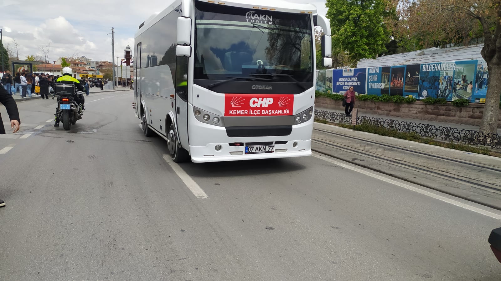 Ankara, Antalya, Mersin, Afyonkarahisar ve Isparta gibi komşu illerden otobüslerle taşınan partililer miting alanına getirildi. Bazı otobüslerin Chp’li belediyelere ait olduğu dikkatlerden kaçmadı.