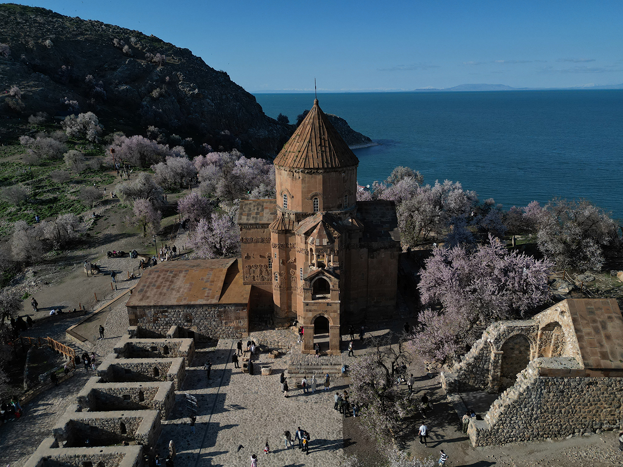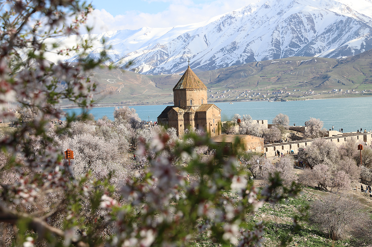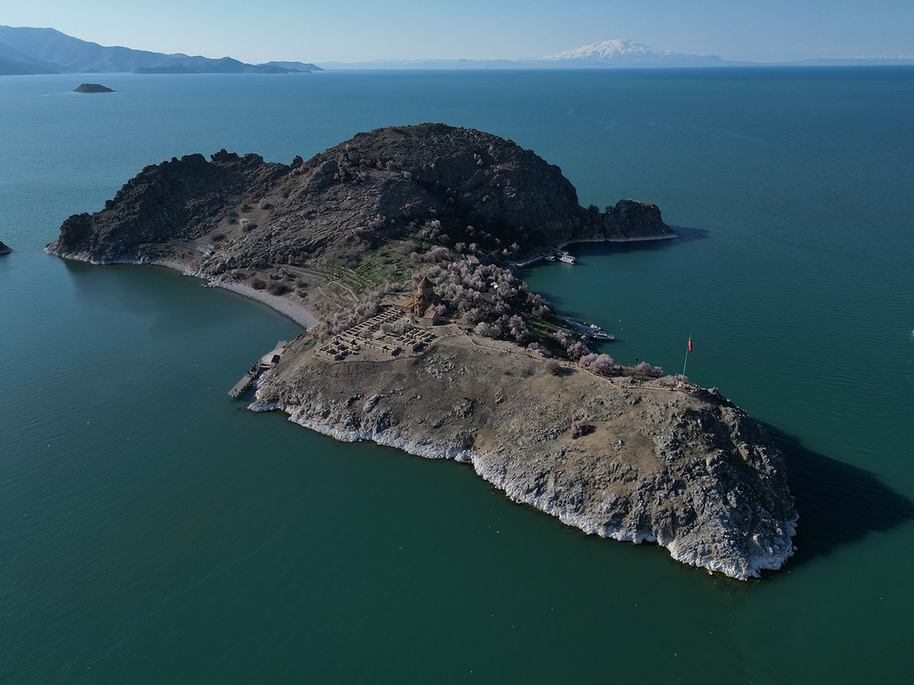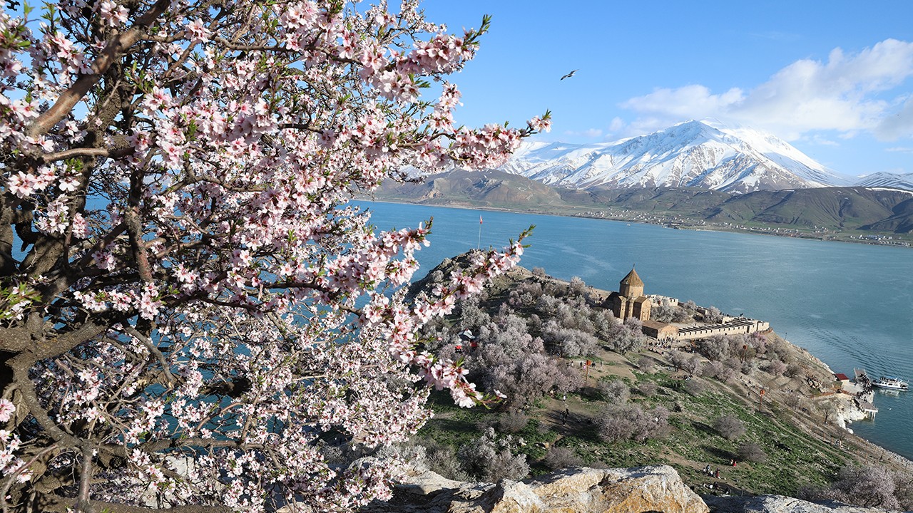 Yılın her döneminde farklı manzarasıyla insanları cezbeden Akdamar Adası, bugünlerde de Van Gölü'nün ve gökyüzünün maviliği ve çiçek açan badem ağaçlarıyla ziyaretçilerini ağırlıyor.