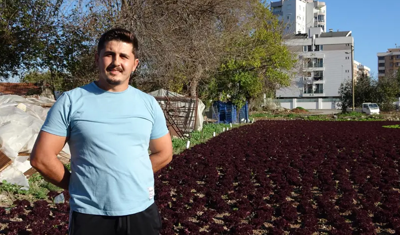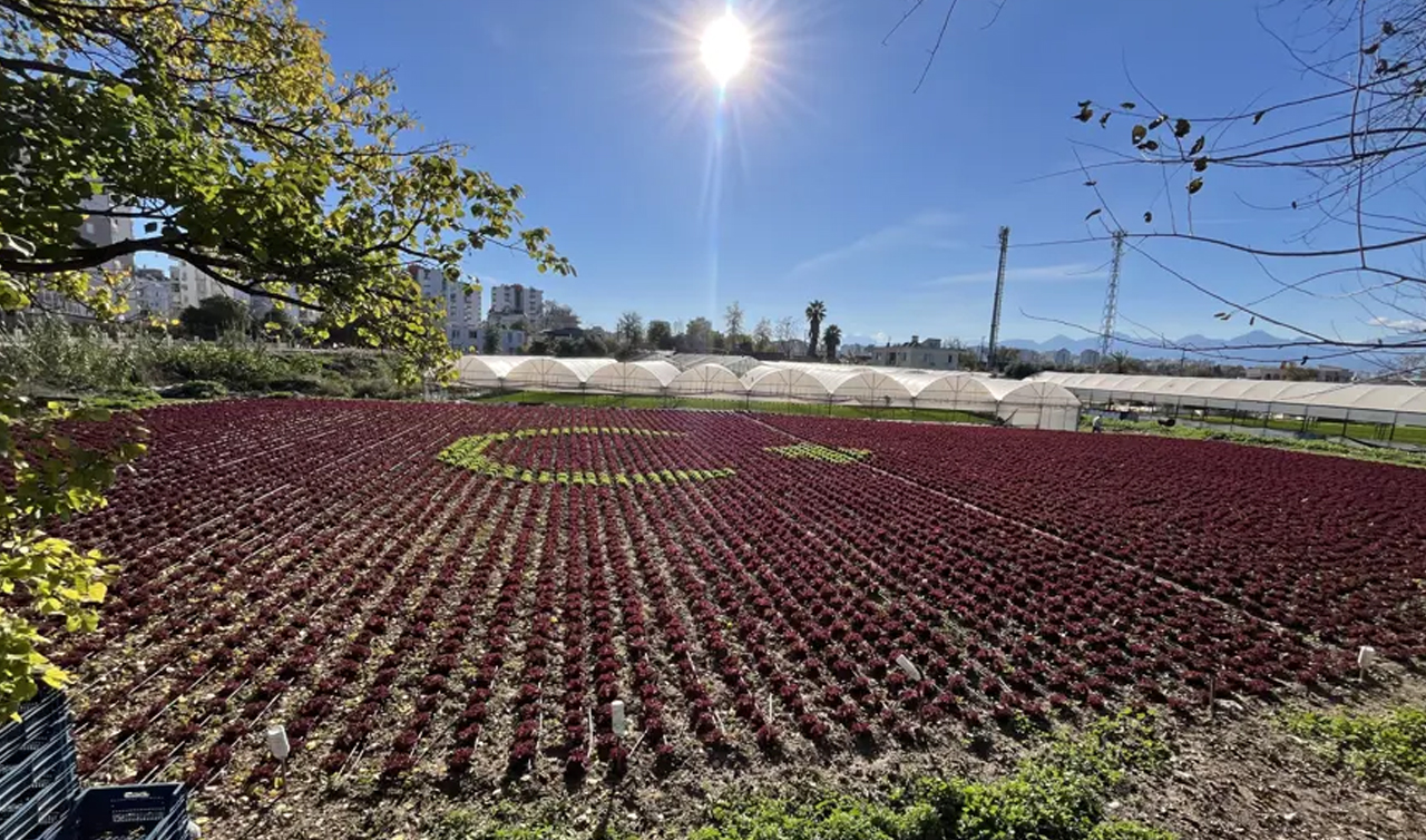 Muratpaşa ilçesinin Zümrütova mahallesinde iki üretici, bir buçuk dönümlük araziye binlerce marulu özenle dikerek tarlada Türk bayrağı görüntüsü oluşturdu. Kırmızı yapraklı marulların arasındaki yeşil kıvırcık marullara verilen hilal ve yıldız düzeni, görenlerin beğenilerini topluyor.