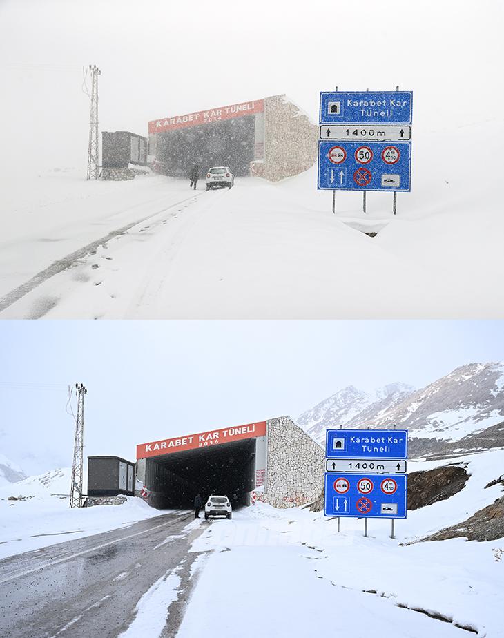 Yoğun kar nedeniyle önceki yıllarda sürekli kapanan, vatandaşların mağdur olmaması için kar tünelleri inşa edilen 3 bin rakımlı Karabet Geçidi'nde, kar kalınlığı 24 santimetre ölçüldü.