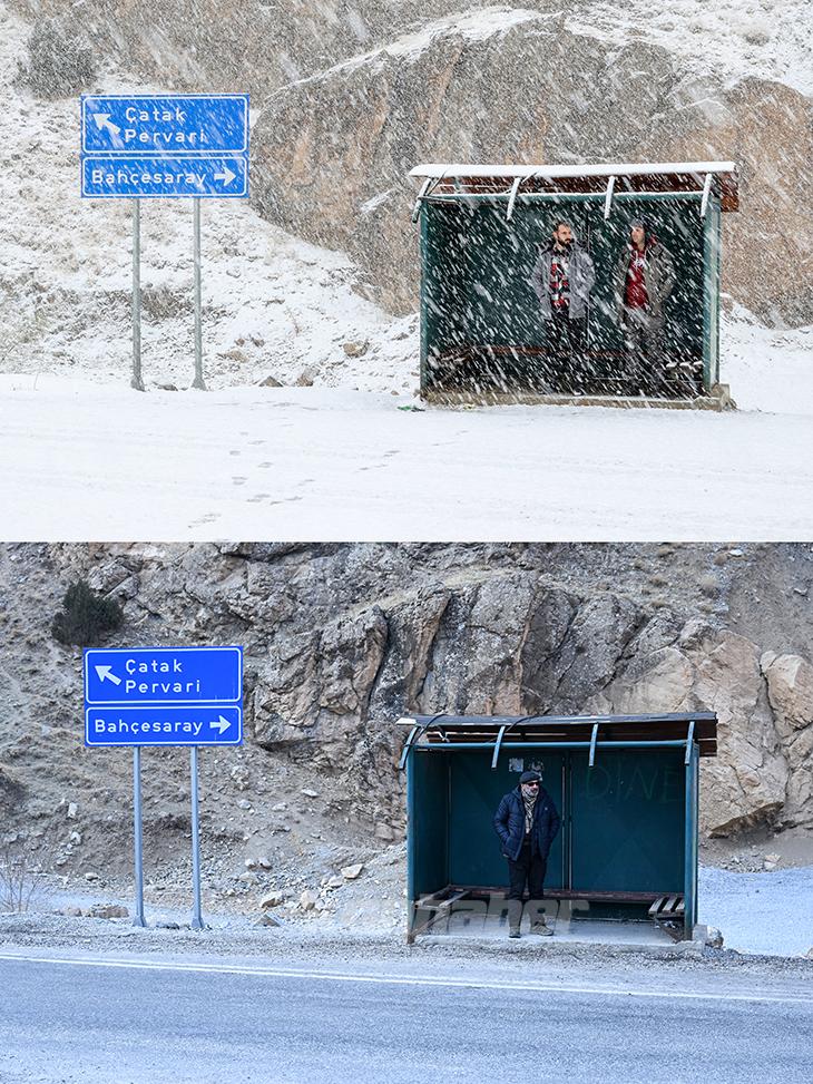 Van'ın en çok kar alan ilçelerinden Bahçesaray'la ulaşım sağlanan ve onlarca çığ yatağı bulunan kara yolunda, bu yıl alışılagelen kar örtüsü yerine sonbahardan kalma görüntüler dikkati çekiyor.