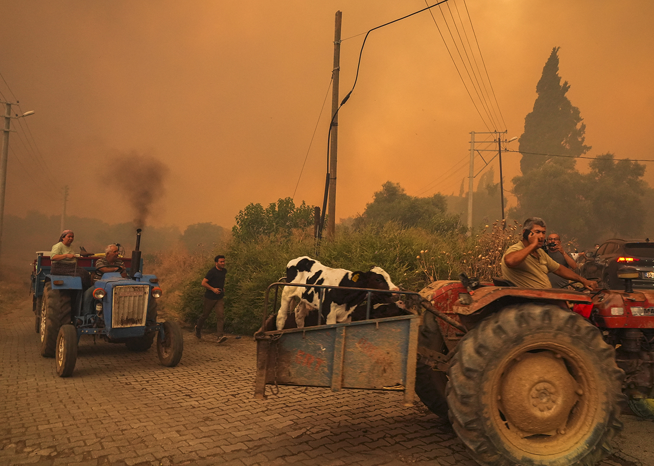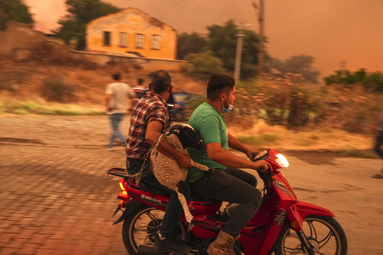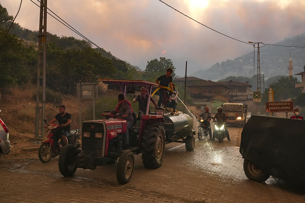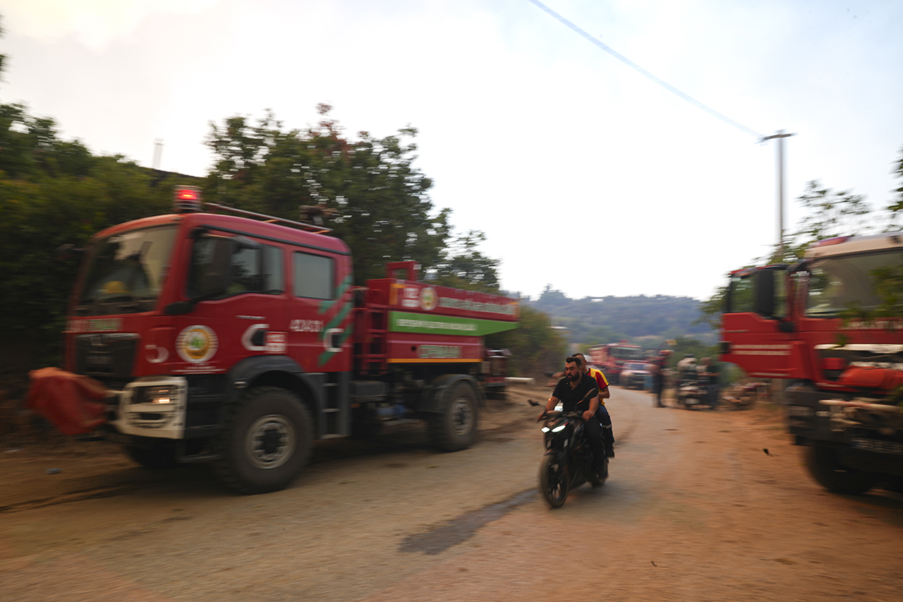 Yaşlı kadınlara jandarma ekipleri ve vatandaşlar yardım ederken, çok sayıda kişi ev eşyalarını araçlarıyla bölgeden uzaklaştırmaya çalıştı. Onlarca ev ise yandı. Ödemiş'ten kaçış ise kameralar tarafından görüntülendi.