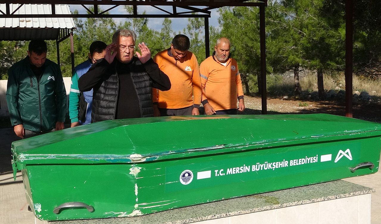 Burada Mersin Büyükşehir Belediyesi Cenaze Hizmetlerine bağlı imam tarafından kıldırılan cenaze namazına da yine aynı birimde görev yapan 4 kişi katıldı. Biri imam 5 kişi ile kılınan cenaze namazının ardından sanatçının naaşı, kimsesizler mezarlığı kısmına defin edildi. Mezarın üzerinin kepçe ile kapatılmasının ardından sanatçının ismi bir tahtaya yazılarak kabrine takıldı.