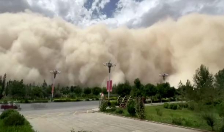 Çin’in Gansu eyaletinde yer alan Dunhuang kentini kum fırtınası vurdu. Fırtına nedeniyle kentte gökyüzü sarı renge bürünürken görüş mesafesi 5 metrenin altına düştü.