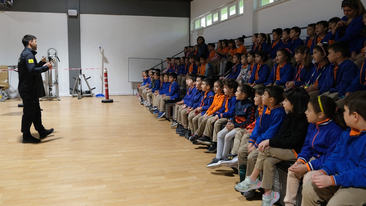 Konya Büyükşehir Belediyesi, şehir merkezindeki ilkokul birinci sınıf öğrencilerine yönelik hem teorik hem de uygulamalı itfaiye eğitimi veriyor.