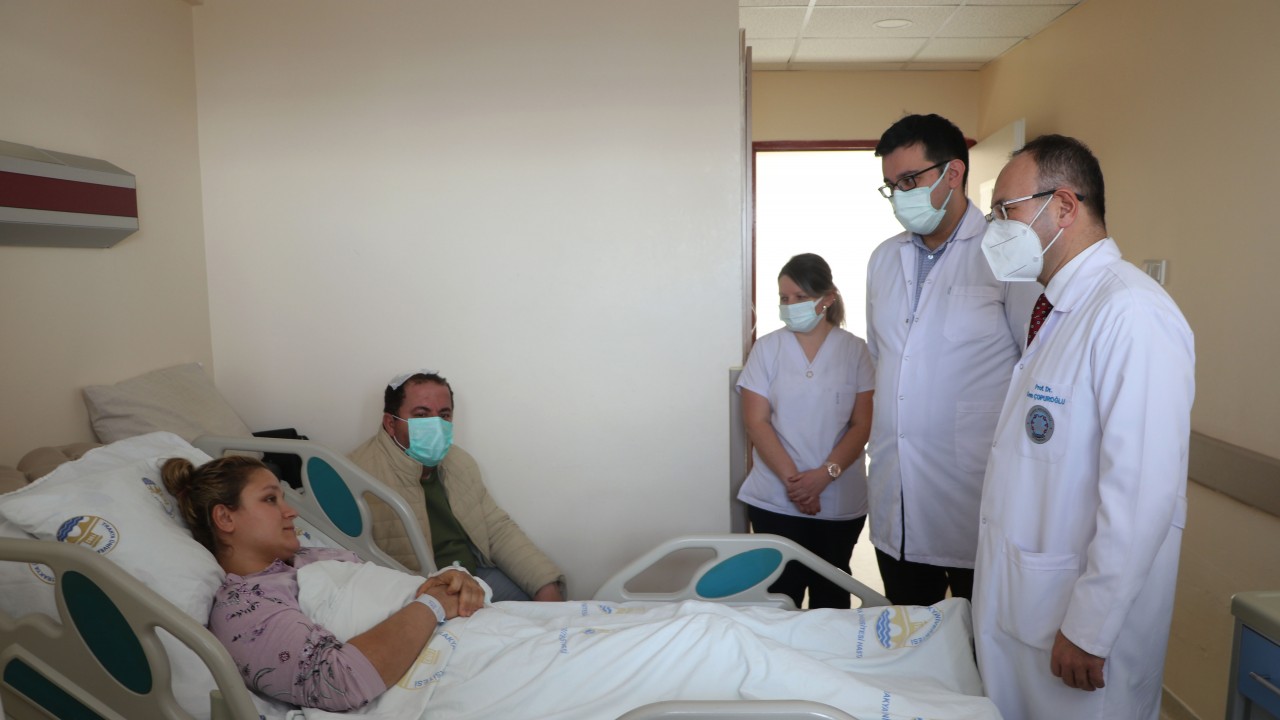 Kahramanmaraş merkezli depremler sırasında, çocuklarını evden çıkarırken enkazda kalan 29 yaşındaki Bilge Demir ile eşi Ahmet Demir'in tedavisi Edirne'de sürüyor.