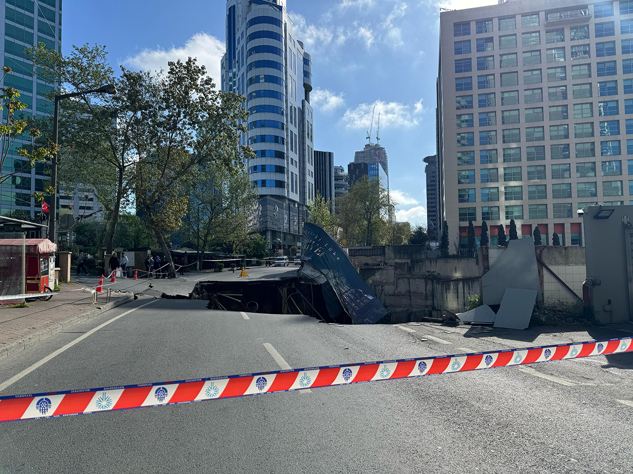 Maslak'ta Eski Büyükdere Caddesi'nde bir inşaat sahasının hemen yanında bulunan yol çöktü.