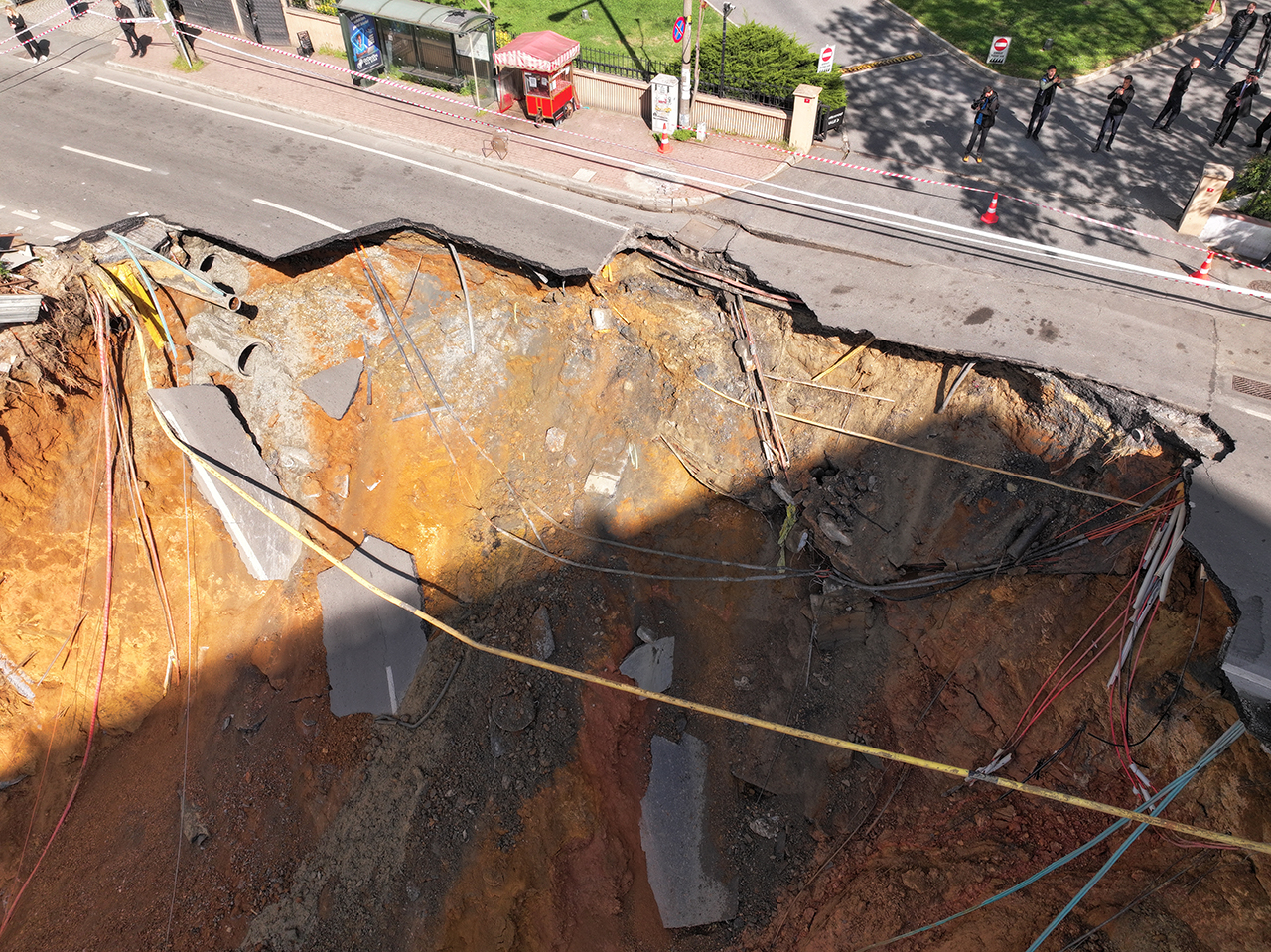 İstanbul Sarıyer'de gece saatlerinde çökme meydana gelen Eski Büyükdere Caddesi trafiğe kapatıldı.