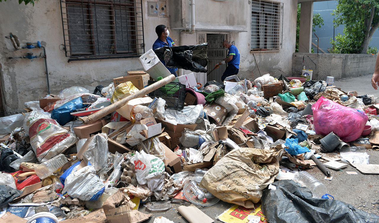 Adana'da polisin, kötü koku şikayeti üzerine gittiği Abdullah Aslan’ın (53) evi, ‘çöp ev’ çıktı. Belediye ekiplerinin çalışmasıyla temizlenen evden 8 kamyonet çöp çıkarıldı. Temizlik çalışması sırasında fenalaşıp, arkadaşlarının yardımıyla evden çıkarılan işçilerden birine, çağrılan ambulansta müdahale edildi.