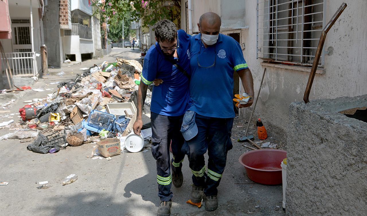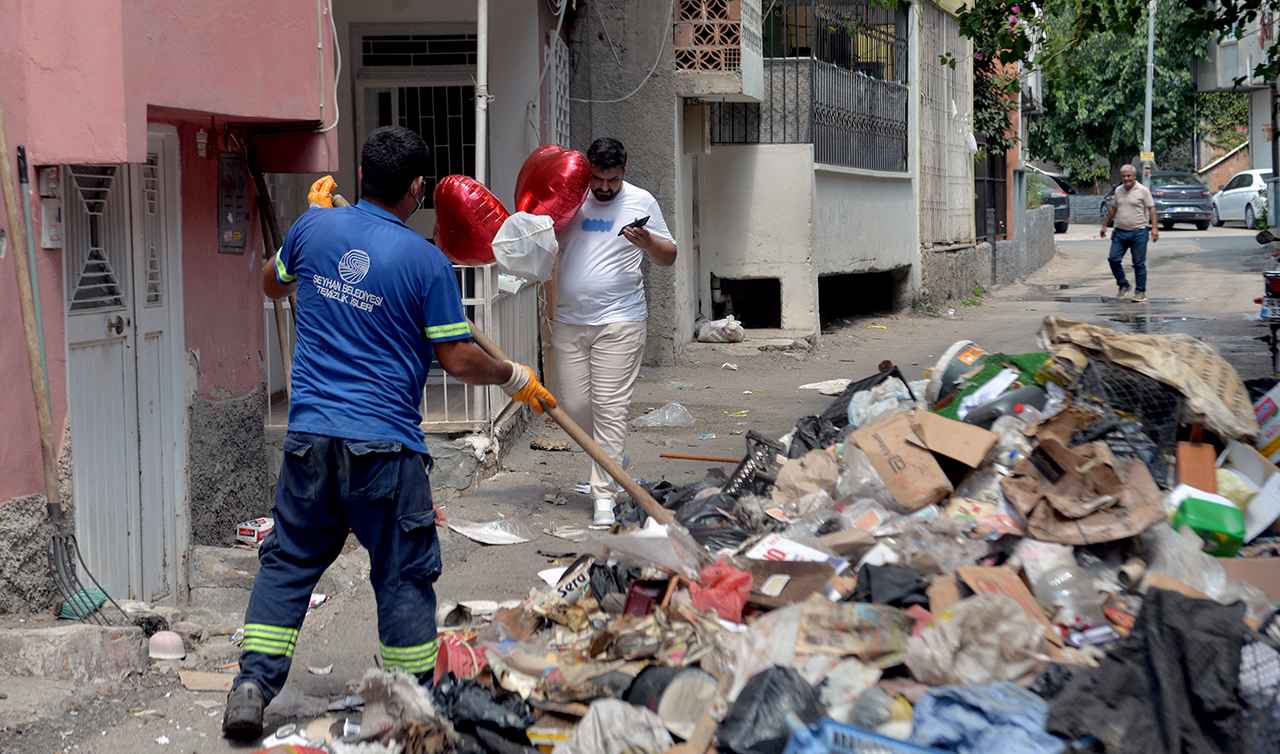 Durumun bildirilmesiyle Seyhan Belediyesi Temizlik İşleri Müdürlüğü ekipleri, temizlik çalışması başlattı. Evin damından, penceresinden ve kapısından çıkarılan atıklar, kamyonetlere yüklenip, kent çöplüğüne taşındı. Temizlik çalışması sırasında işçilerden biri, kokudan etkilenip, fenalaştı. Başı dönen ve titrediği görülen işçi, arkadaşlarının yardımıyla evin dışına çıkarıldı. Temiz hava alıp, elini ve yüzünü yıkayan işçiye çağırılan ambulansta müdahale edildi. Ekipler, temizlik çalışmasının ardından böceklerin sardığı evi ilaçladı. Evden 8 kamyonet çöp çıkarıldığı belirtildi.