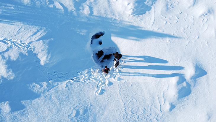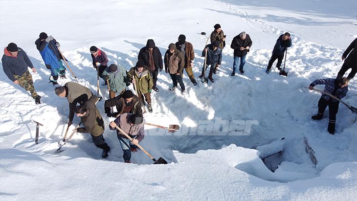 Kar basılması esnasında def eşliğinde yöresel türküler söyleniyor. Deliğin yanındaki eğimli alanlarda aileler de naylon ve kızaklarla kayak keyfi yaşıyor.