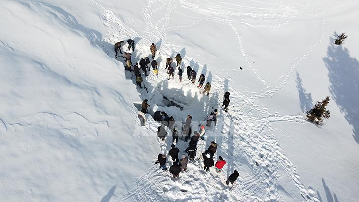 Cula Deliği'nin karla tamamen doldurulmasının ardından katılımcılara yemek ikram edildi.