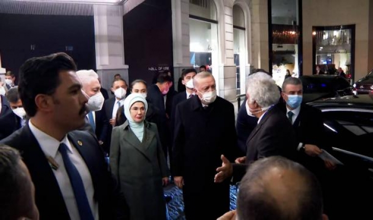 Havalimanından Brüksel'de konaklayacağı otele giden Cumhurbaşkanı Erdoğan, otel önünde sevgi gösterisi ile karşılandı.