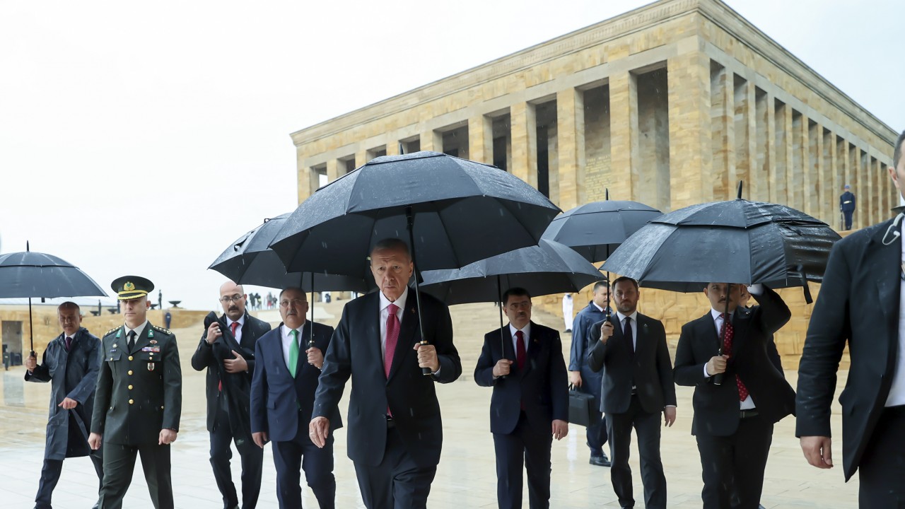 Beraberindeki heyetle Aslanlı Yol'dan yürüyerek Atatürk'ün mozolesine çıkan Erdoğan'ın, ay yıldızlı çelengi bırakmasının ardından saygı duruşunda bulunuldu ve İstiklal Marşı okundu.