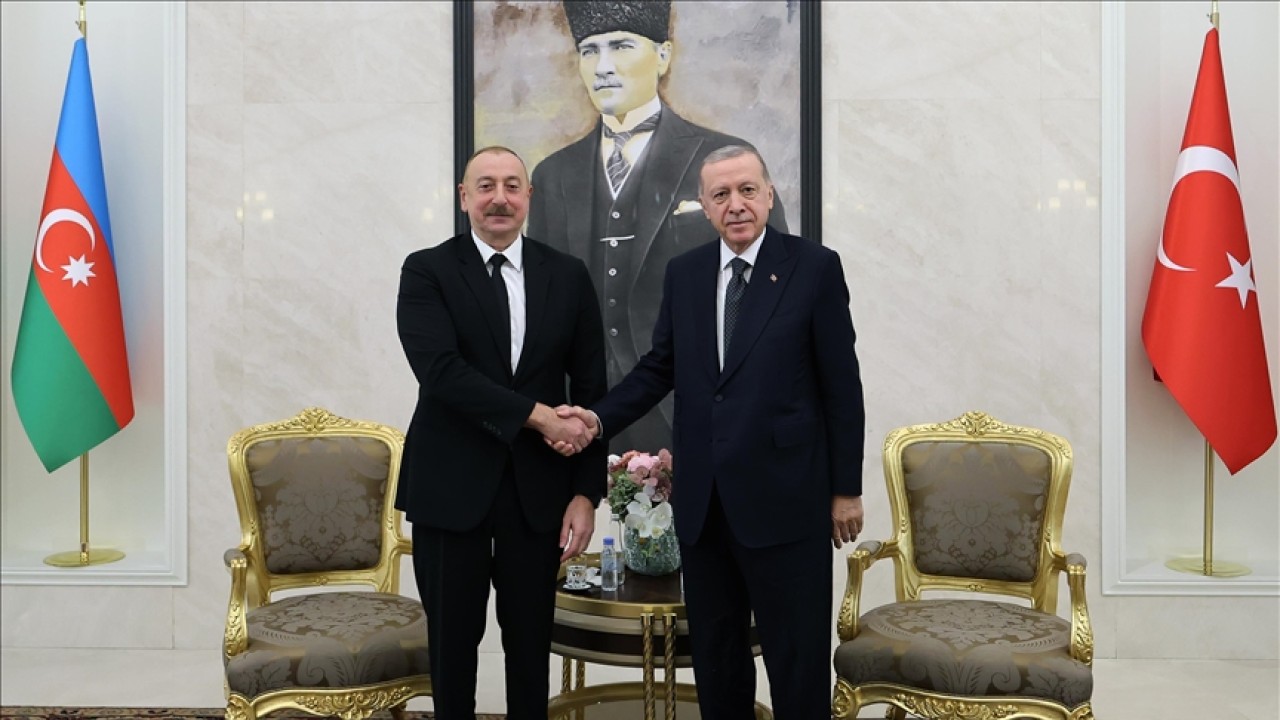 Aliyev'i uçaktan inişinde karşılayan Cumhurbaşkanı Erdoğan'a, Cumhurbaşkanı Yardımcısı Cevdet Yılmaz, AK Parti Genel Başkan Yardımcısı ve Parti Sözcüsü Ömer Çelik ile Cumhurbaşkanı Dış Politika ve Güvenlik Başdanışmanı Akif Çağatay Kılıç da eşlik etti. Cumhurbaşkanı Erdoğan ve Aliyev, havalimanında bir süre görüştü.