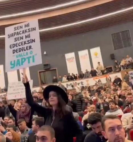 "Cumhurbaşkanım karizmanız şaka mı?" yazılı pankarta ise "İşte karşınızda hakikat" diyerek mizahi bir şekilde cevap verdi.
