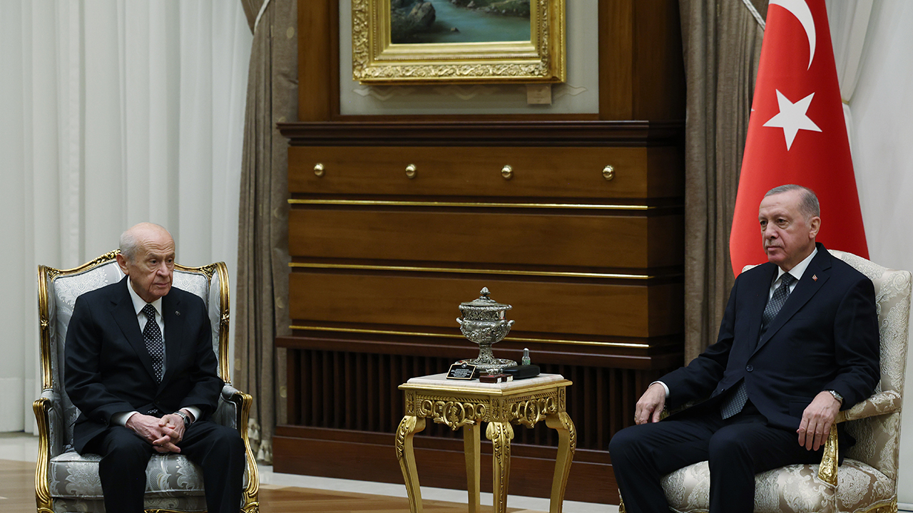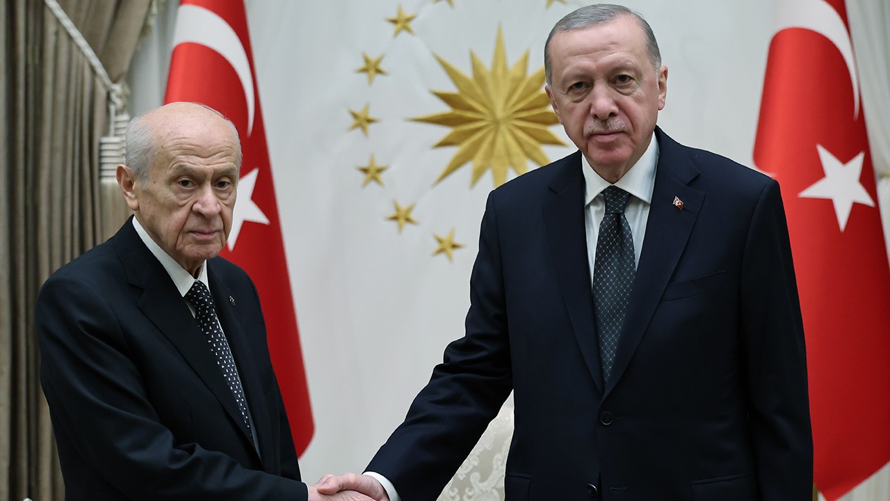Cumhurbaşkanı Recep Tayyip Erdoğan, MHP Genel Başkanı Devlet Bahçeli'yi kabul etti. Cumhurbaşkanlığı Külliyesi'ndeki görüşme, basına kapalı gerçekleşti.