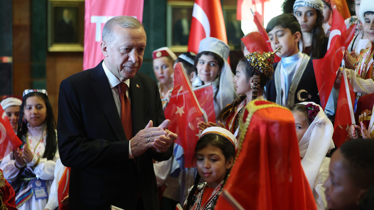 Cumhurbaşkanı Erdoğan, 23 Nisan Ulusal Egemenlik ve Çocuk Bayramı dolayısıyla Cumhurbaşkanlığı Külliyesi'nde Türk Dünyası Çocukları ve TRT Çocuk Şenliği Konuk Çocukları kabul etti.