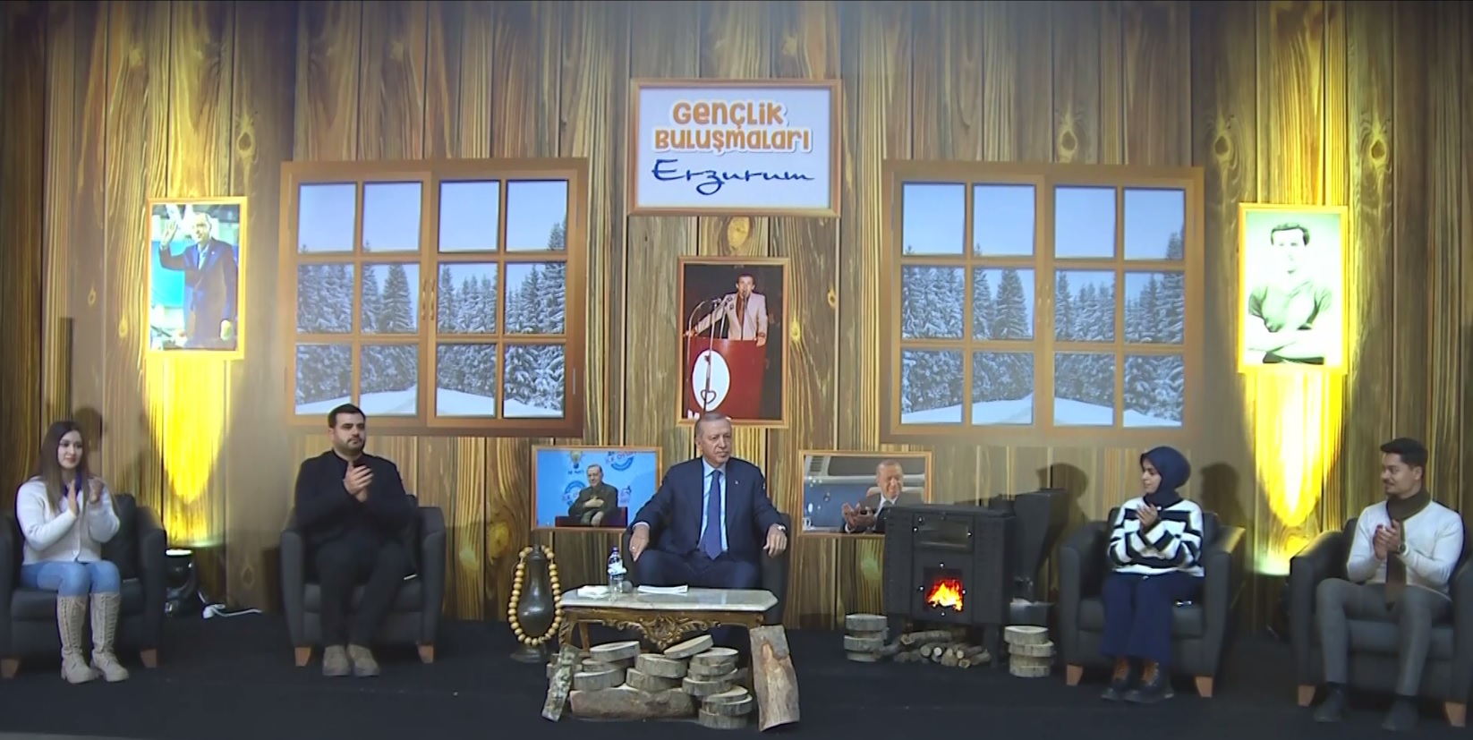 Cumhurbaşkanı Recep Tayyip Erdoğan, partisinin Erzurum 8'inci Olağan İl Kongresi'ne katılmak için geldiği kentte 'Gençlik Buluşması'na katıldı. Programda Milli Eğitim Bakanı Yusuf Tekin, Gençlik ve Spor Bakanı Osman Aşkın Bak ve AK Parti Grup Başkan Vekili Efkan Ala da yer aldı. Cumhurbaşkanı Erdoğan, programda 'sarı gelin' ve 'ıslak ıslak' şarkılarını söyleyen Ferhat Göçer'e de eşlik etti. Burada konuşan Erdoğan, gençlerle her bir araya gelişinde adeta gençleştiğini belirterek, "Bunun için gerek Ankara ve İstanbul'da ki programlarda, gerek şehir ziyaretlerimizde her fırsatta gençlerimizle bir araya gelmeye gayret ediyorum. Rahmetli Necip Fazıl, 'gençlik yaş işi değil, ruh işidir' diyor. Fatih Sultan Mehmet Han 21 yaşında İstanbul'u fethederken hangi inanç ve azme sahipse, hükümdarlığının 46'ncı yılında 73 yaşında çıktığı seferde hayata gözlerini yuman Kanuni de aynı hissiyatla hareket ediyordu. Ben de burada Fatih'in yolundan giden bir gençlik, Kanuni'yi, Yavuz'u takip eden bir nesil görüyorum. Gençlerine güvenmeyen bir millet geleceğinden umudunu kesmiş demektir. Biz siyasette, bürokraside, ticarette, sivil toplum faaliyetlerinde hayatın her alanında gençlerimize güvendik, inandık. Hep onların önünü açtık. Türk siyasetinde gençlere ve kadınlara hem il ve ilçe teşkilatları, hem genel merkez düzeyinde en üst seviyede temsil imkanını biz sağladık. Bunu yaparken elbette eski dönemlerin taassuplarının eseri direnişlerle de, tepkilerle de karşılaştık. Ama hiçbirine kulak asmadık. Doğru bildiğimiz yolda kararlılıkla yürüdük. Hamdolsun uzun bir mücadelenin ardından gençlerimizin ve kadınlarımızın dinamizmini ülkemize kazandırmayı da başardık. Hep söylediğimiz gibi partimizin gençlik kollarını, geleceğe hazırlayan bir okul olarak kabul ettik. Gençlerimizi arka bahçemiz değil, asli yol ve mesai arkadaşlarımız olarak gördük" ifadelerini kullandı. Ardından programın soru ve cevap kısmında Erdoğan, gençlerin sorularını yanıtladı.