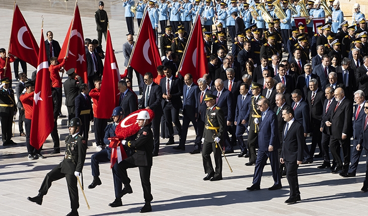 Cumhurbaşkanı Recep Tayyip Erdoğan başkanlığındaki devlet erkanı, Cumhuriyet'in ilanının 99'uncu yıl dönümü dolayısıyla Anıtkabir'i ziyaret etti.