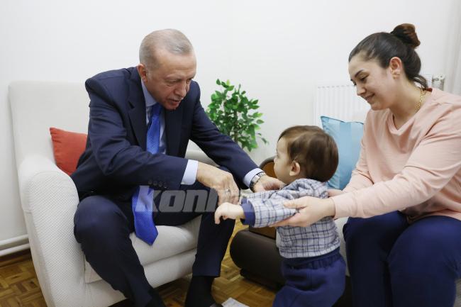 Cumhurbaşkanı Erdoğan ve eşi Emine Erdoğan, depremzede Hülya Çelebi ve ailesini Ankara'da yerleştikleri evde ziyaret etti.