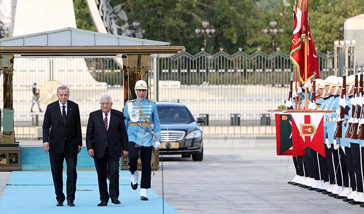 Cumhurbaşkanı Recep Tayyip Erdoğan, Türkiye'ye resmi ziyarette bulunan Filistin Devlet Başkanı Mahmud Abbas ile Cumhurbaşkanlığı Külliyesi'nde ortak basın toplantısı düzenledi. Cumhurbaşkanı Erdoğan, " "İsrail ile ilişkilerimizde atılan adımlar Filistin davasına desteğimizi hiçbir şekilde azaltmayacaktır." dedi.
