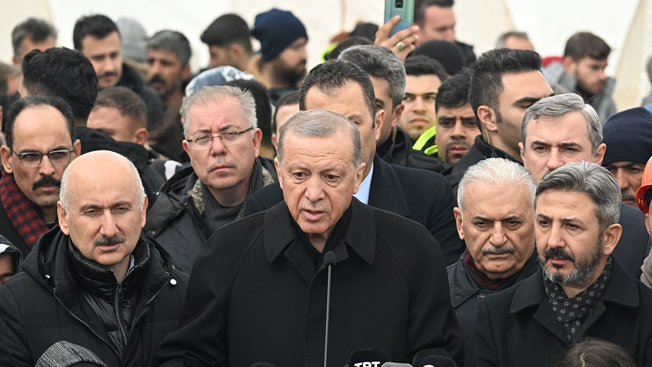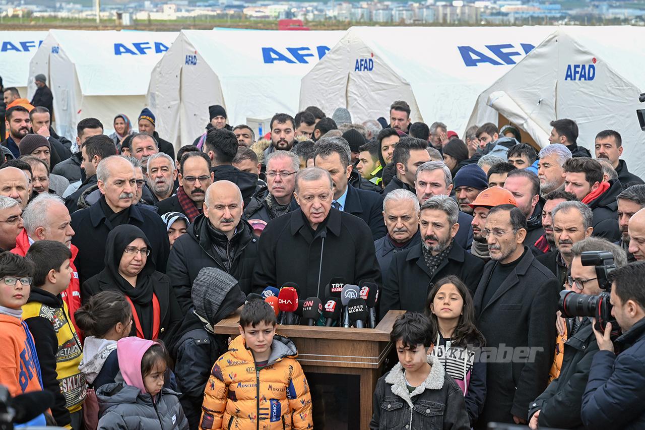 Erdoğan, "asrın felaketi" olarak nitelenen, Akdeniz, Güneydoğu ve Doğu Anadolu bölgelerindeki 10 ili etkileyen depremlerin ardından geldiği Adıyaman'da açıklamada bulundu.