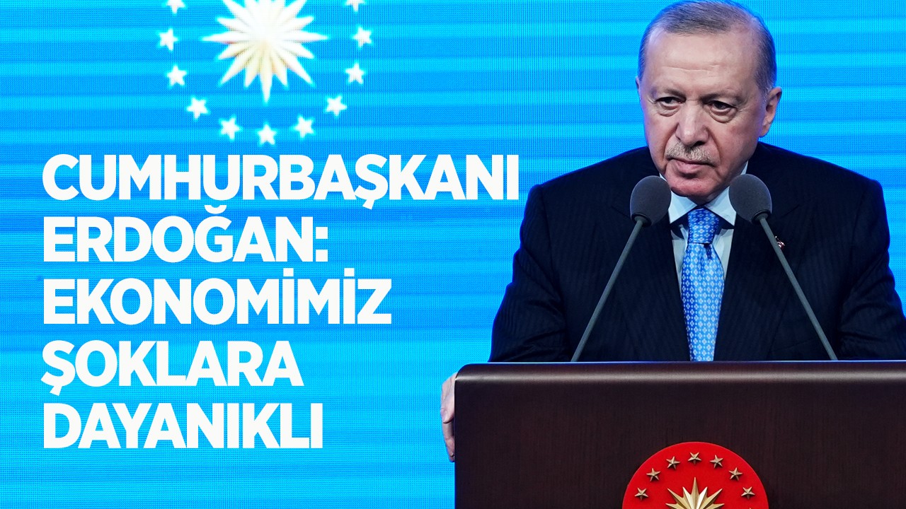 Cumhurbaşkanı Recep Tayyip Erdoğan, kalkınma maratonunun sürdüğünü dile getirip "Ekonomimiz şoklara dayanıklı." dedi.