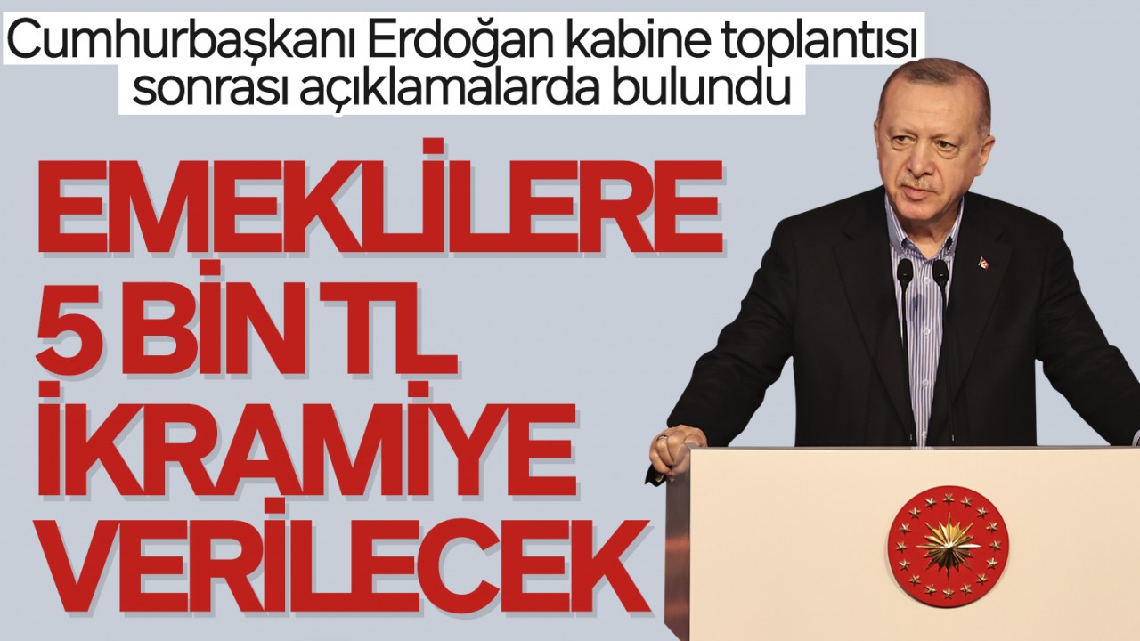 Kabine toplantısının ardından açıklamalarda bulunan Cumhurbaşkanı Erdoğan, emekliler için 1 defaya mahsus 5 bin TL ödeme yapılacağını açıkladı.