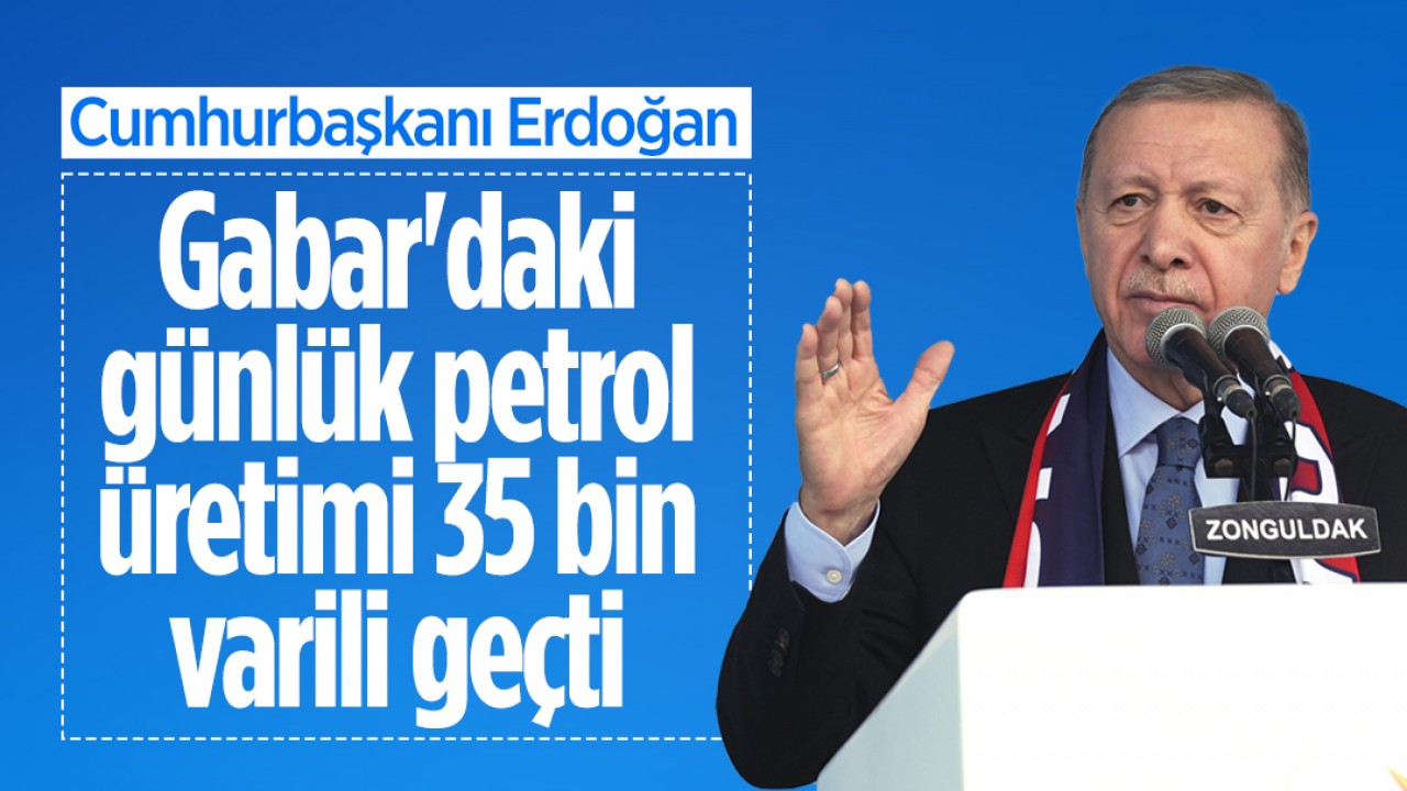 Cumhurbaşkanı Recep Tayyip Erdoğan, Gabar'daki petrol kuyularında günlük üretimin bugün itibarıyla 35 bin varili geçtiğini belirterek, bu rakamı 2024 yılı sonunda 100 bin varile çıkarmayı hedeflediklerini söyledi.