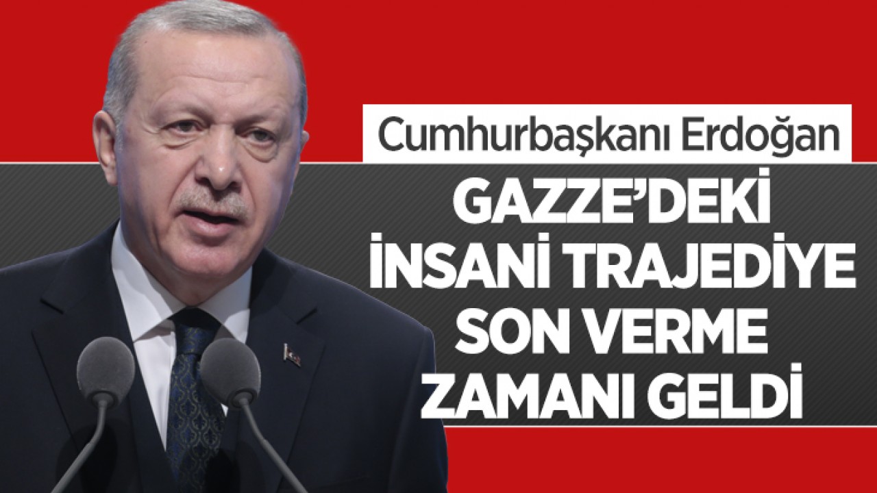 Cumhurbaşkanı Erdoğan, Gazze’deki şiddet sarmalını durdurmak için Türkiye’nin gayretlerinin devam ettiğini, Gazze’deki insani trajediye son verme zamanının geldiğini söyledi