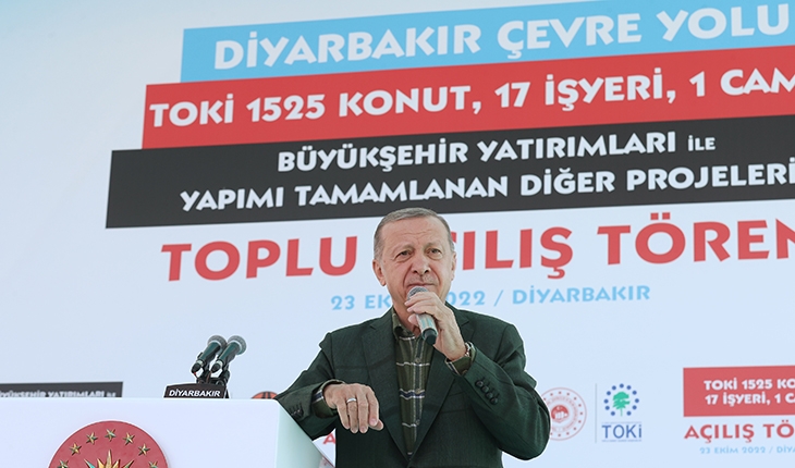 Cumhurbaşkanı Recep Tayyip Erdoğan, İstasyon Meydanı'nda düzenlenen "Diyarbakır Çevre Yolu, TOKİ 1525 Konut, 17 İşyeri, 1 Camii ve Büyükşehir Yatırımları ile Yapımı Tamamlanan Diğer Projelerin Toplu Açılış Töreni"nde konuştu.