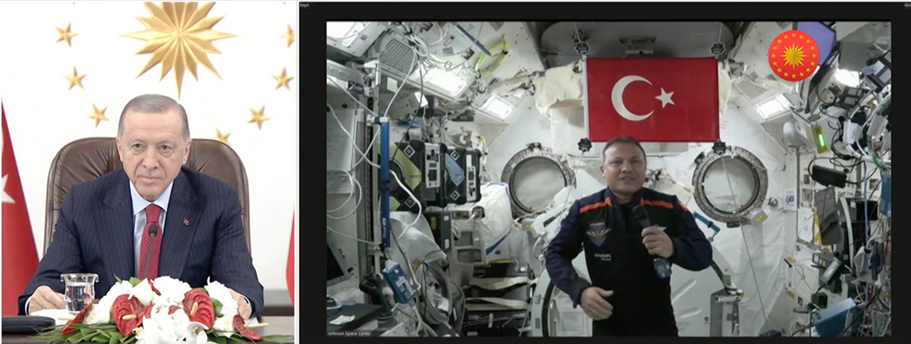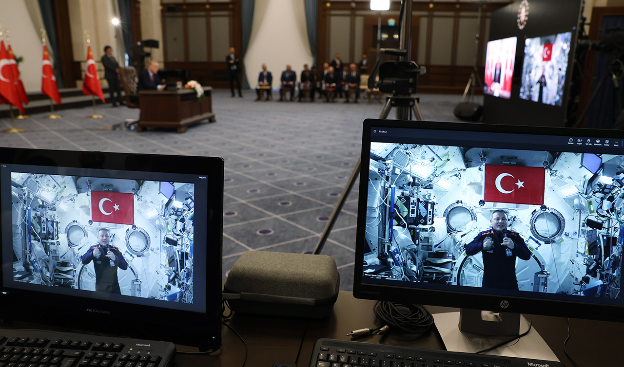 Cumhurbaşkanı Recep Tayyip Erdoğan, "İlk İnsanlı Uzay Misyonu" kapsamında Uluslararası Uzay İstasyonu'ndaki ilk Türk astronot Alper Gezeravcı ile canlı bağlantı yoluyla görüştü. Erdoğan, "Çıktığın yolda sana başarılar diliyorum" dedi.