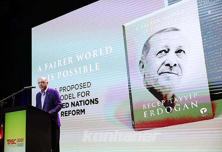 Cumhurbaşkanı Erdoğan'ın, Türkiye'nin tüm insanlık için ortaya koyduğu adalet arayışını ayrıntılı şekilde anlattığı "Daha Adil Bir Dünya Mümkün" kitabı, Türk Amerikan Ulusal Yönlendirme Komitesi'nin (TASC) The Manhattan Center'da düzenlediği etkinlikte tanıtıldı.