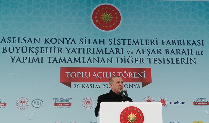 Cumhurbaşkanı Recep Tayyip Erdoğan, Mevlana Meydanı'nda düzenlenecek ASELSAN Konya Silah Sistemleri Fabrikası, Büyükşehir Yatırımları ve Afşar Barajı ile Yapımı Tamamlanan Diğer Tesislerin Toplu Açılış Töreni'nde konuştu.