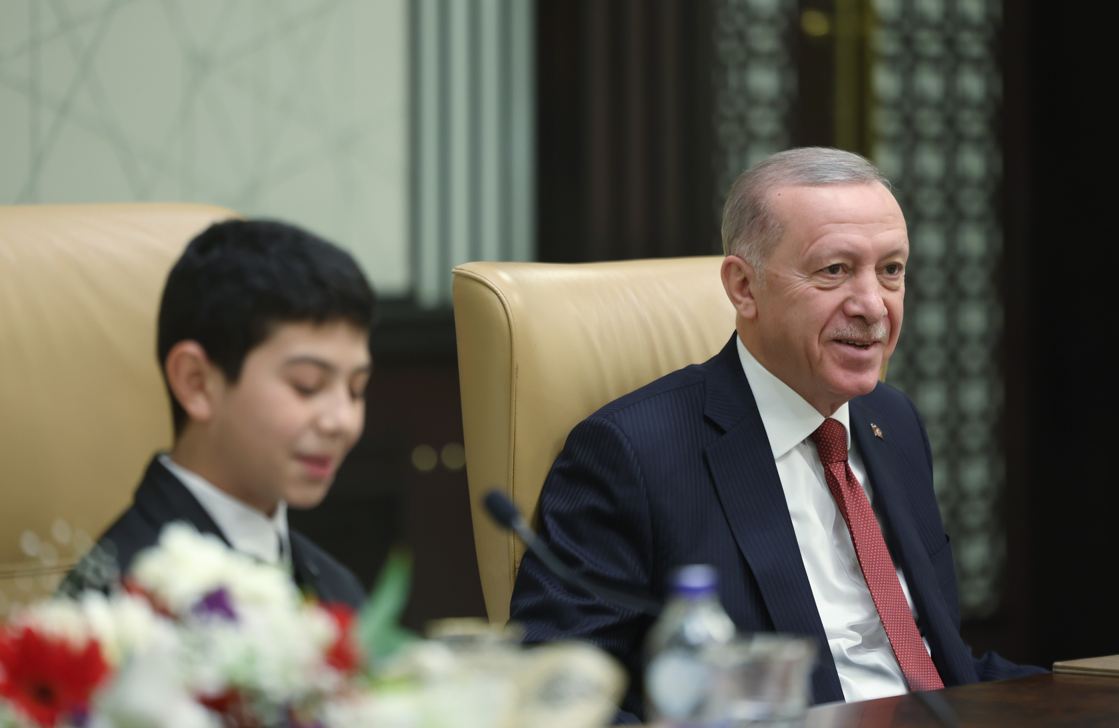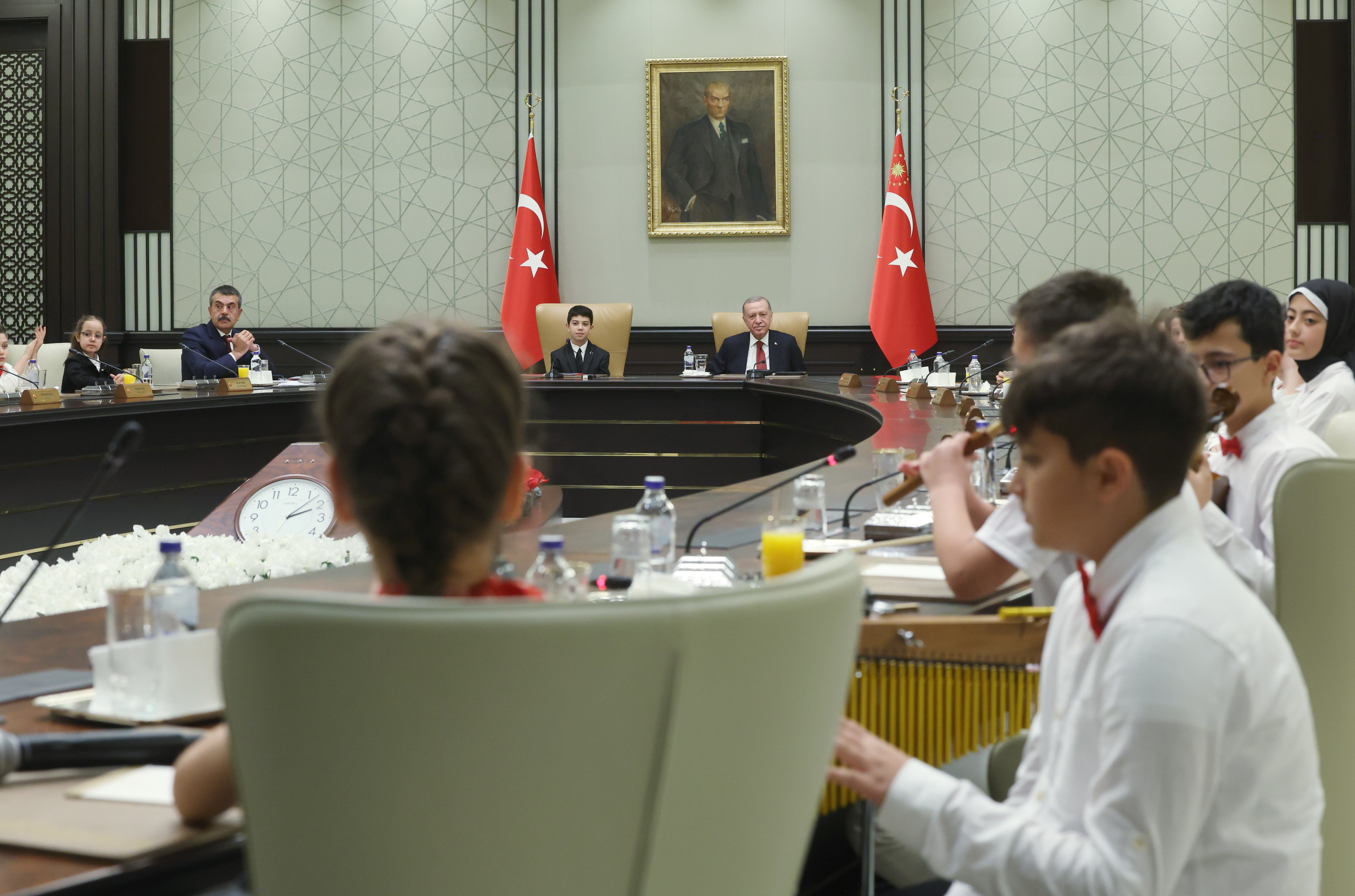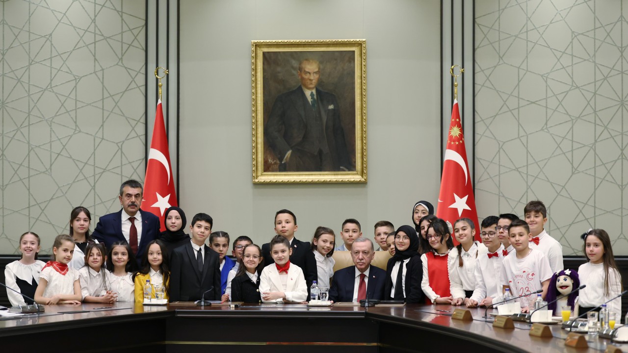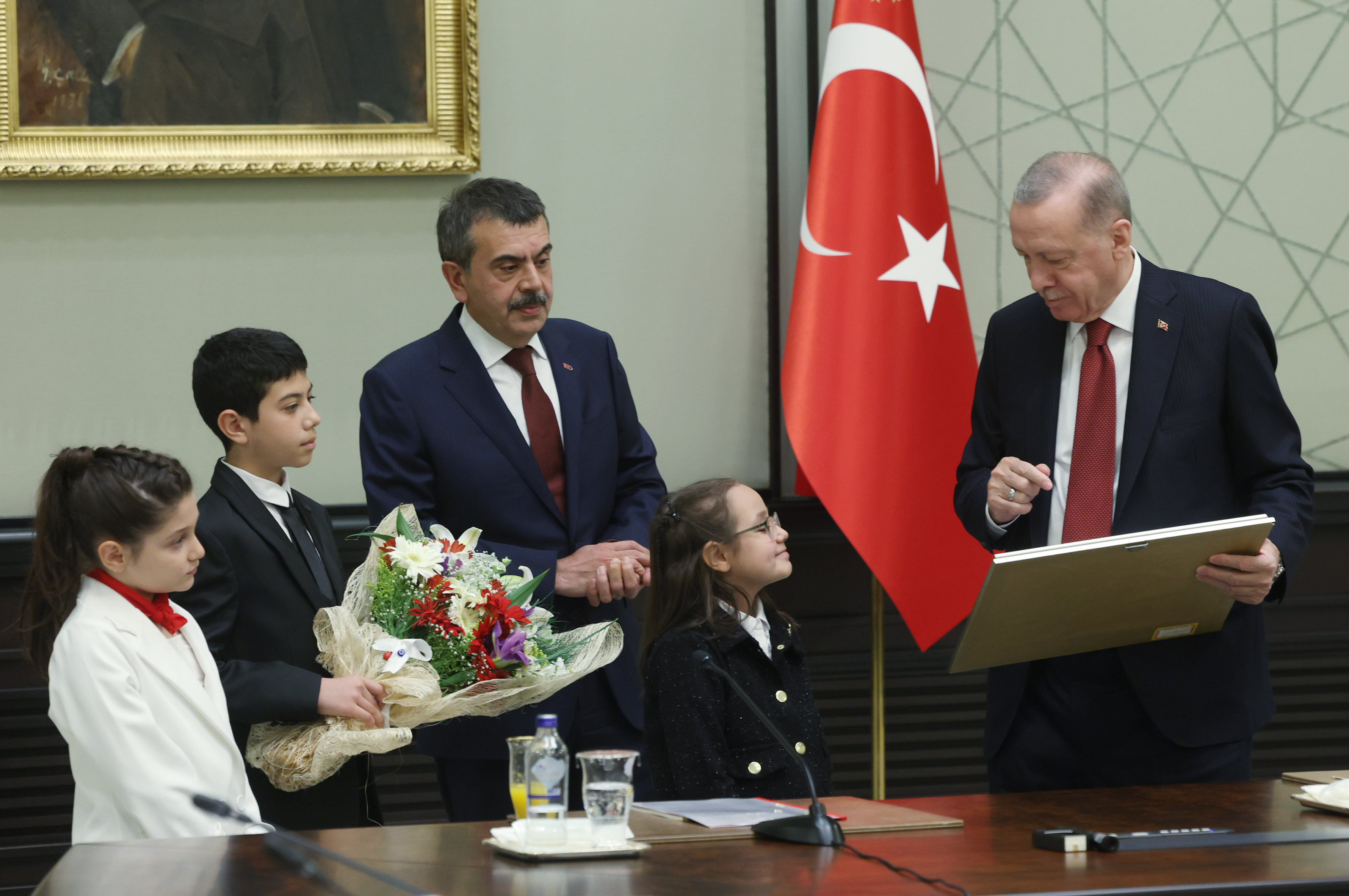 Cumhurbaşkanı Recep Tayyip Erdoğan, Cumhurbaşkanlığı Külliyesi'nde Milli Eğitim Bakanı Yusuf Tekin ve beraberindeki çocukları kabul etti.