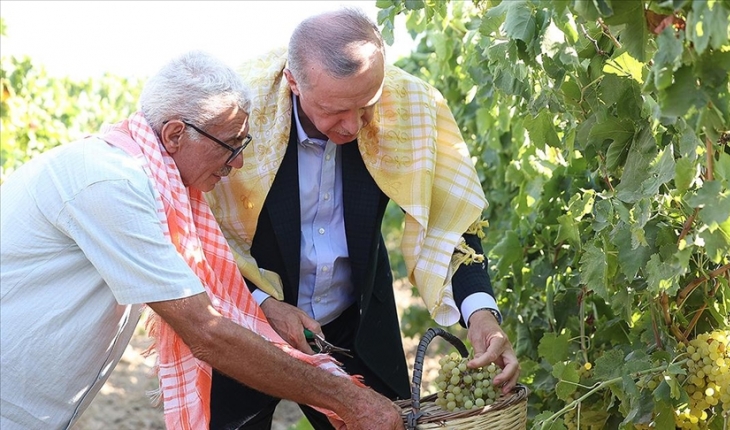 Cumhurbaşkanı Recep Tayyip Erdoğan, Manisa'nın Şehzadeler ilçesine bağlı Güzelköy Mahallesi'nde 22 dönümlük arazide bağ bozumuna katıldı.