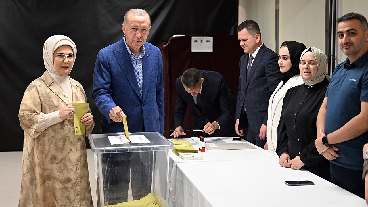 Cumhurbaşkanı Recep Tayyip Erdoğan ve eşi Emine Erdoğan, oylarını kullanmak için Üsküdar Kısıklı'daki konutlarından çıkarak saat 12.05'te Saffet Çebi Ortaokulu'na geldi.