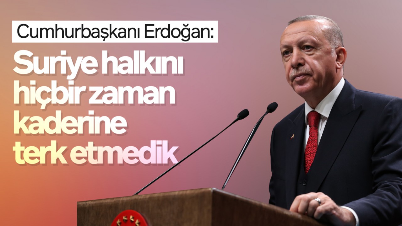 Cumhurbaşkanı Recep Tayyip Erdoğan, "Bir avuç ülke dışında tüm dünyanın sırtını döndüğü Suriye halkını biz hiçbir zaman kaderine terk etmedik" dedi.