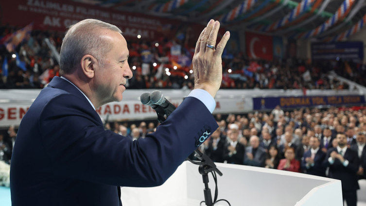 AK Partili kadrolar olarak yirmi üç buçuk yıl önce uzun ince bir yola çıktıklarını hatırlatan Erdoğan, "Gayemiz milletin umutlarını yeşertmek, büyütmek, güçlendirmekti. Her şey Türkiye için dedik. Her şey milletimiz için dedik. Türk, Kürt, Arap, Zaza, Sünni, Alevi, biz hep birlikte Türkiye'yiz dedik. Yolumuz kardeşlik yoludur, refah, kalkınma, huzur yoludur dedik. Ufkumuzla beraber gönlümüzü de geniş tuttuk. Bizimle aynı yöne bakan, aynı hissiyatı taşıyan, aynı ideallere inanan, bu yolu bizimle omuz omuza yol yürümek isteyen herkese kapımızı açtık. Etnik köken, inanç, mezhep, hayat tarzı üzerinden yapılan bütün ayrımları elimizin tersiyle ittik. Partimizi kurduğumuz andan itibaren siyasete yeni bir dil, yeni bir üslup, yepyeni bir bakış açısı kazandırdık. siyasi rakiplerimizin uzlaşmaz tavrına rağmen biz daima yapıcı olmaya, gönül diliyle konuşmaya gayret ettik. Laf üretmekten ziyade iş üretmeyi kendimize prensip edindik. Polemikten uzak durarak dilimizin döndüğü, nefesimizin yettiği kadar milletimize eserlerimizi, hizmetlerimizi, yatırımlarımızı anlatmaya çalıştık. Bizden daha çok icraatlerımız konuşsun istedik. Bizden daha çok eserlerimiz, projelerimiz anlatsın istedik. Seçim dönemlerinde korkutarak, istismar ederek, tehdit ederek değil, hep yaptıklarımızla, hedeflerimizle, projelerimizle milletimizin karşısına çıktık. Bu anlayışla iktidardaki 22 yılımızı hamdolsun başarıyla tamamladık. Önümüze çekilen setleri tek tek yıkarak, yolumuza konulan engelleri tek tek aşarak bugünlere kadar geldik." diye konuştu.