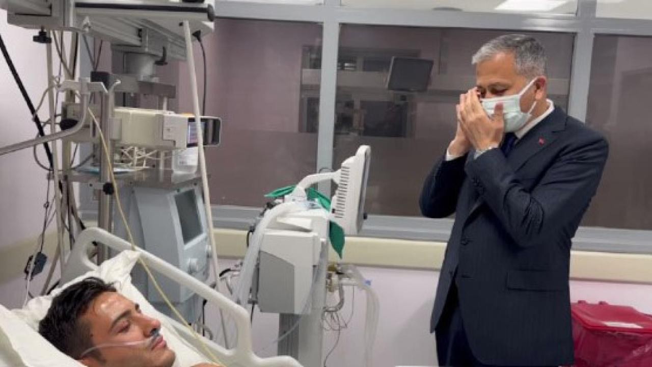 Bakan Yerlikaya, Ankara'daki terör saldırısı sonrası yaralanan polis Alim Reis Demirel ve Erkan Karataş'ı tedavi gördükleri hastanede ziyaret etti.
