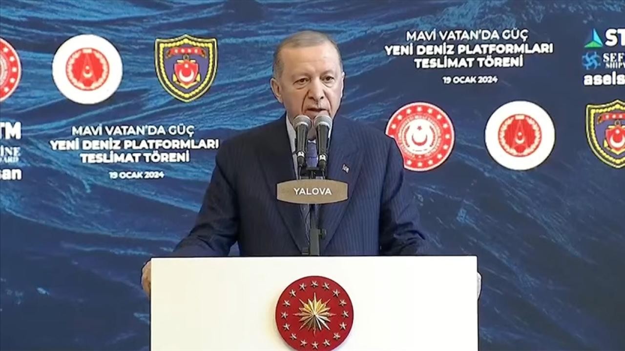 Cumhurbaşkanı Recep Tayyip Erdoğan, Yalova Sefine Tersanesi'nde Mavi Vatana Güç: Yeni Deniz Platformları Teslimat Töreni'nde konuştu.