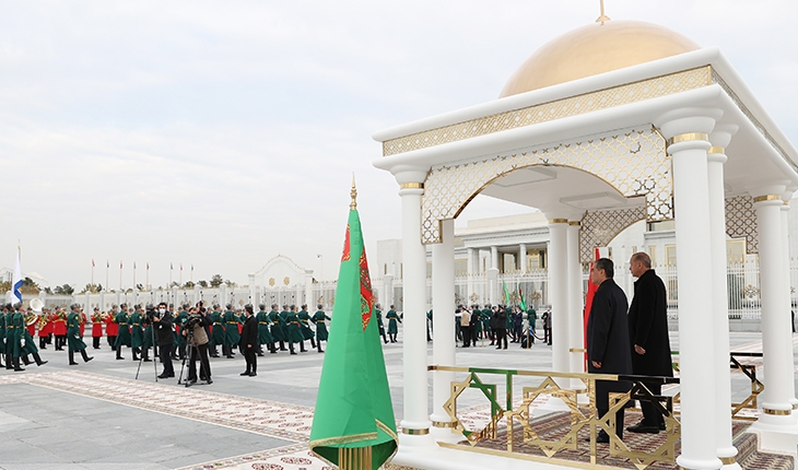 Cumhurbaşkanı Erdoğan, Türkmenistan Devlet Başkanı Gurbanguli Berdimuhammedov tarafından Oğuzhan Köşkü’nde resmi törenle karşılandı.