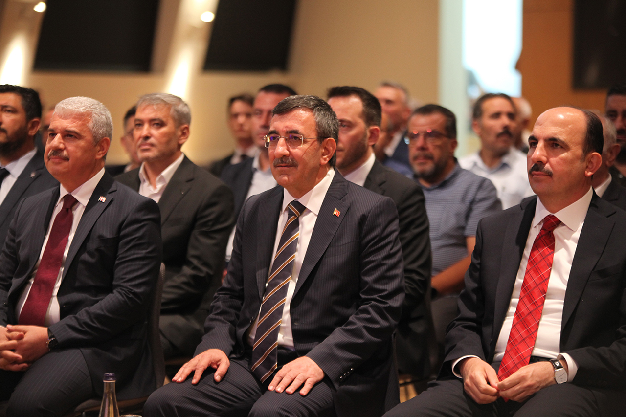Cumhurbaşkanı Yardımcısı Yılmaz, bugün dünyada da, Türkiye'de de ekonominin öncelikli mesele olduğu belirterek, "Dünyanın hali çok iyi değil doğrusu. Dünya ekonomisine baktığımız zaman geçmişte yılda ortalama yüzde 3,5 büyüyen dünya ekonomisi bugün yüzde 3'ler civarında büyüme noktasında. Ticaret genelde büyümeden fazla olurdu. Şu anda dünya ticareti büyümenin de altında. Bu sene yüzde 2,5 civarında bir büyüme bekleniyor. Dolayısıyla dünya ekonomisinin hali pek iyi değil. Özellikle daha fazla ticaret yaptığımız Avrupa Birliği çok daha düşük rakamlara sahip. Uzun bir süredir maalesef dinamizmini kaybetmiş durumda, büyüme gerçekleştiremiyor, ticaretini arttıramıyor" ifadelerini kullandı.